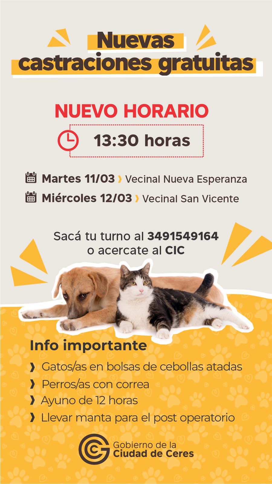 El Municipio se hizo cargo en su totalidad de las castraciones y semanalmente se realizan en distintos puntos de la ciudad para una mayor comodidad.
