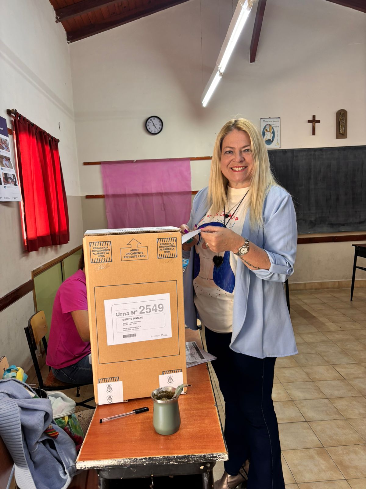 La Intendente Alejandra Dupouy cumplio con su derecho cívico y emitió su voto sobre el mediodía de este domingo.